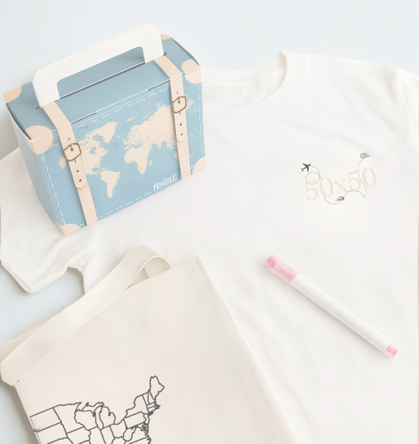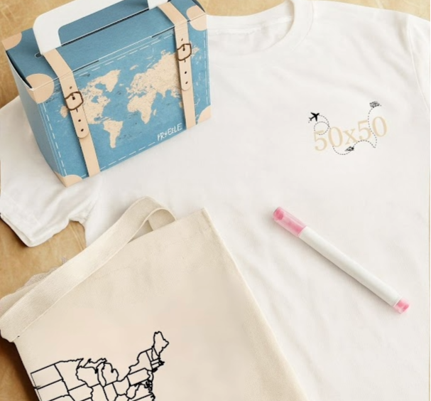 So we created 50x50® Travels—USA-made shirts and canvas bags you can color as you go, marking every state, memory, and milestone along the way.